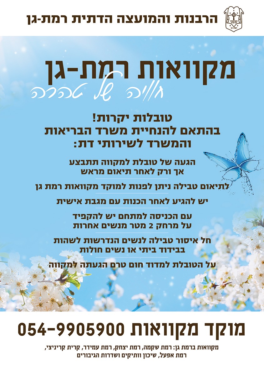 ראשי > פעילות המועצה הדתית בימי הקורונה > הנחיות מקוואות רמת גן – קורונה פעילות המועצה הדתית בימי הקורונה הנחיות מקוואות רמת גן – קורונה